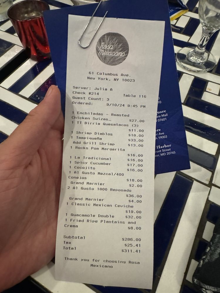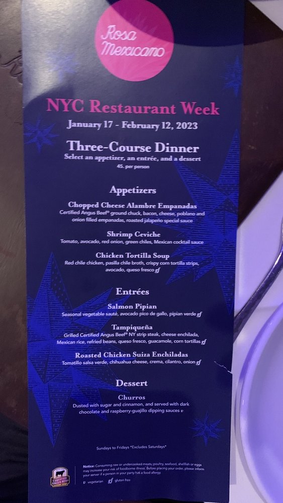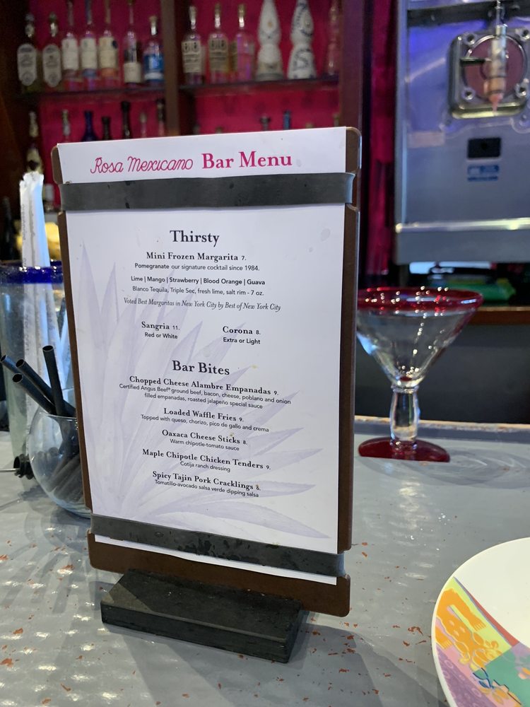 Rosa Mexicano is a vibrant restaurant located in New York, offering a variety of Mexican dishes with a modern twist. The menu includes delicious starters like Black Bean and Cheese Empanadas, Chicken Flautas, and a selection of flavorful Guacamoles. Customers rave about the fresh ingredients and generous portion sizes, making it perfect for sharing with friends and family. The restaurant also offers a great selection of cocktails, including their famous margaritas, perfect for happy hour or special occasions. With friendly staff, a lively atmosphere, and a convenient location near Lincoln Center, Rosa Mexicano is a must-visit for anyone craving authentic Mexican cuisine in a fun setting.